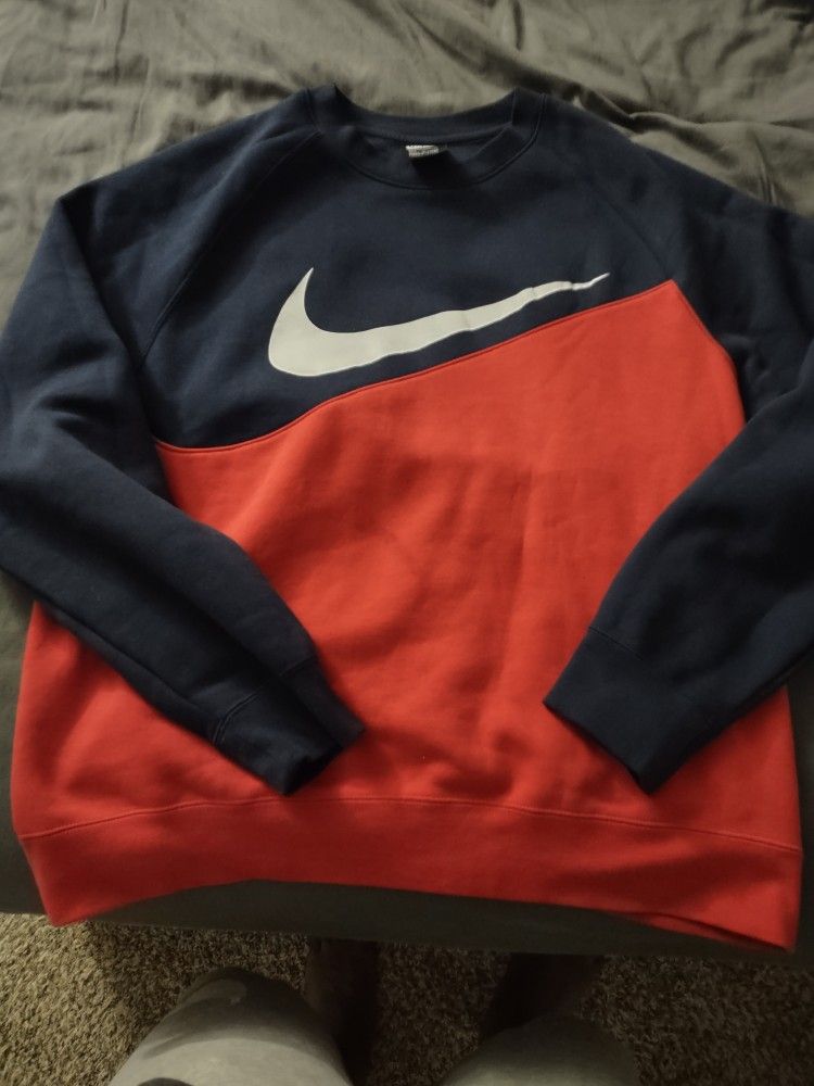 New Nike sweatshirt Big Swoosh Blue red White Sz L
