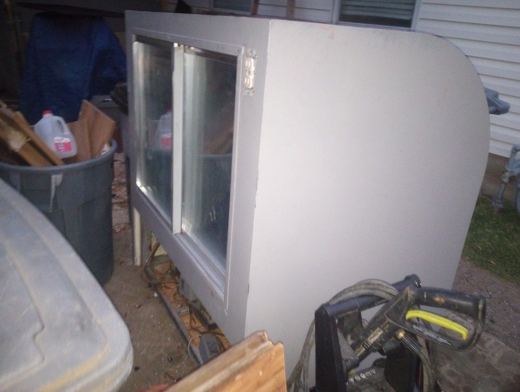 It's a Royal it does work has two 110 outlets and switch for light inside. Has the shelves and the sliding glass doors with 2 way mirror glass. I put castors on it but probably take off due to it's weight. It's heavy . The curved glass and the compressor. Good for deli,donut shop or a frigid display case. Royal is one of the best. New they cost $4500-$6,000. I will take $300 I got to move her asap