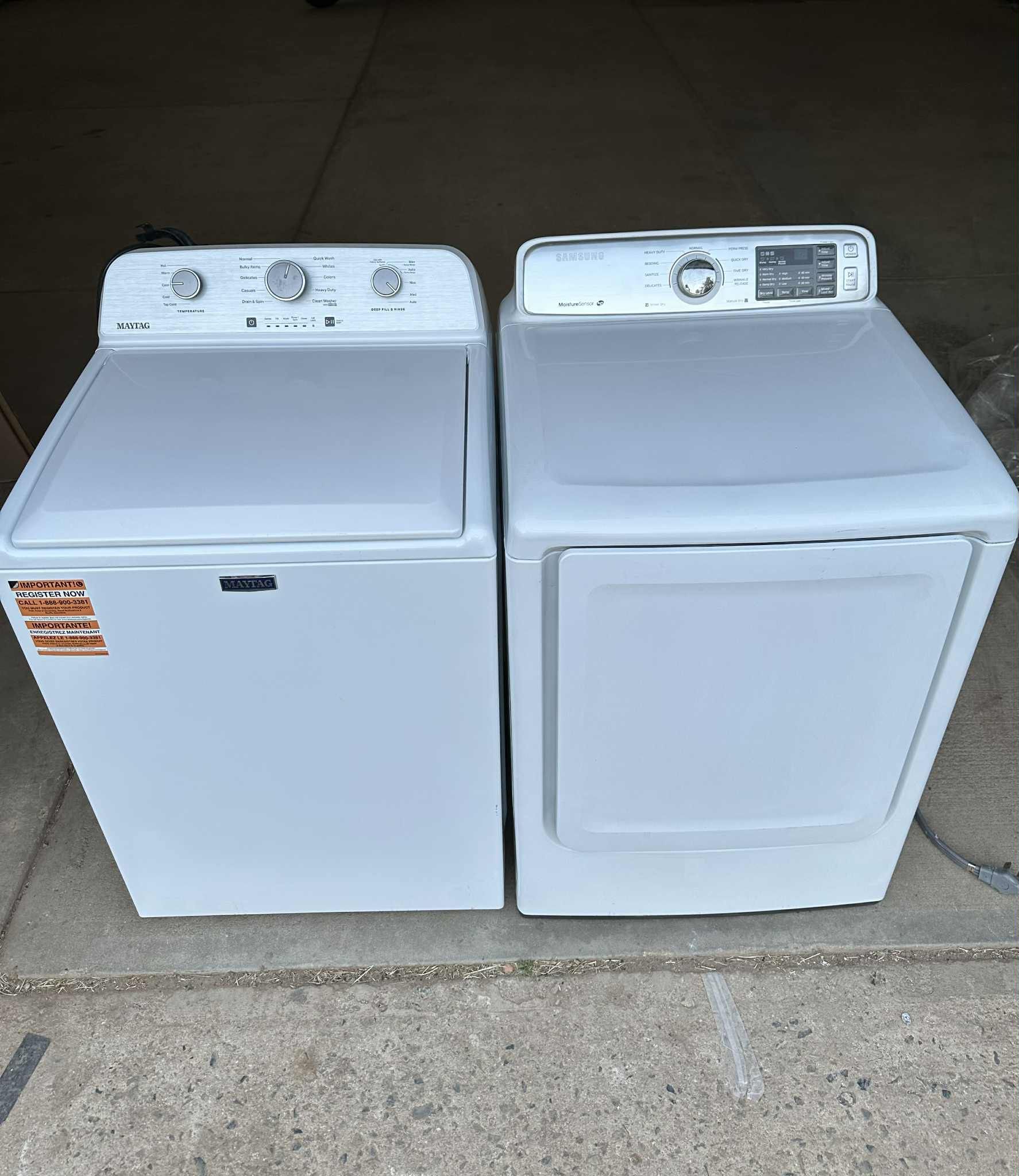 Maytag washer with Agitador and Samsung electric dryer everything works correctly and no issues Clean inside and out Free delivery and installation