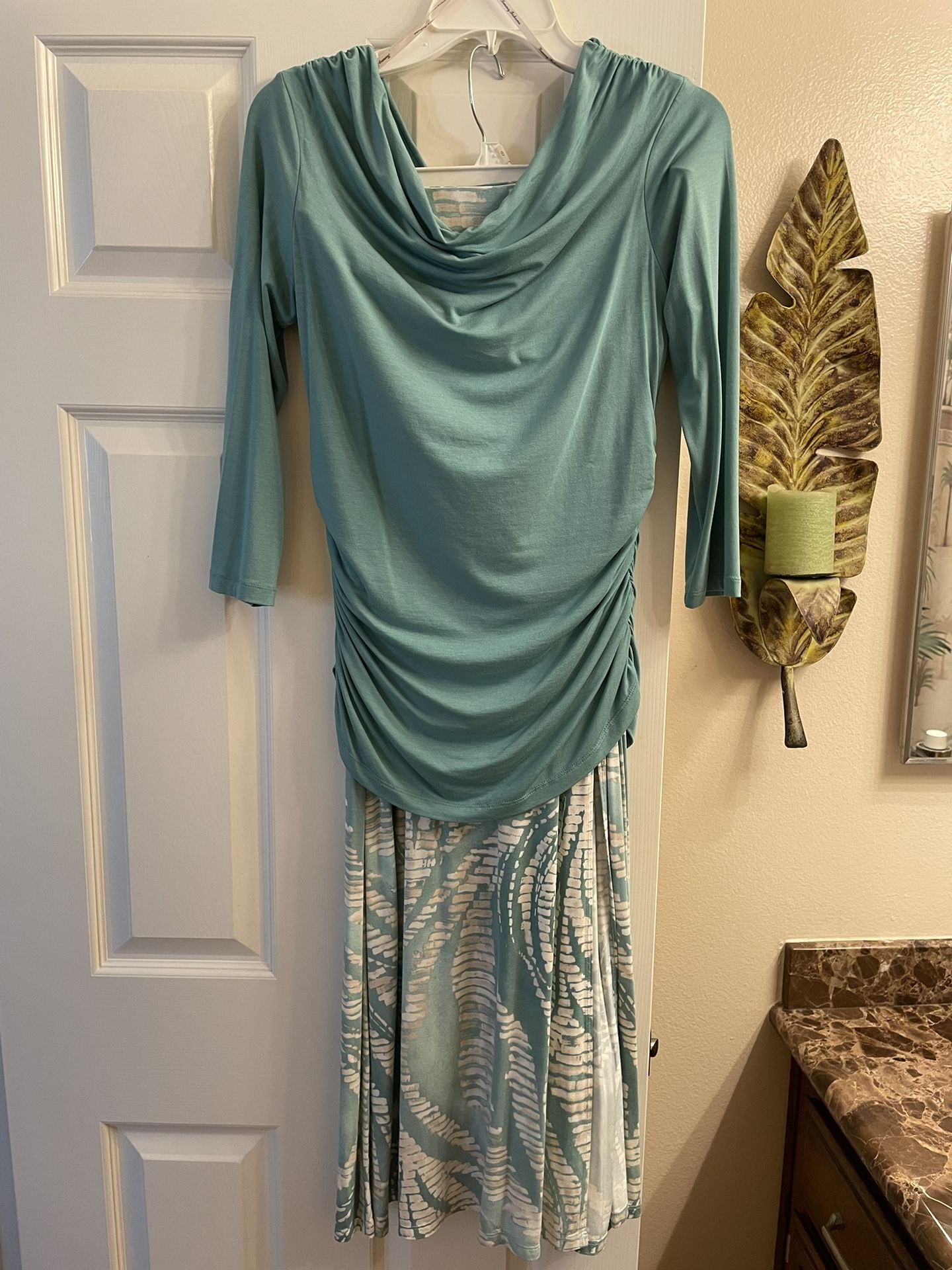 Brand new. Tags still attached. Long skirt has a designer slit on left side. So pretty!
