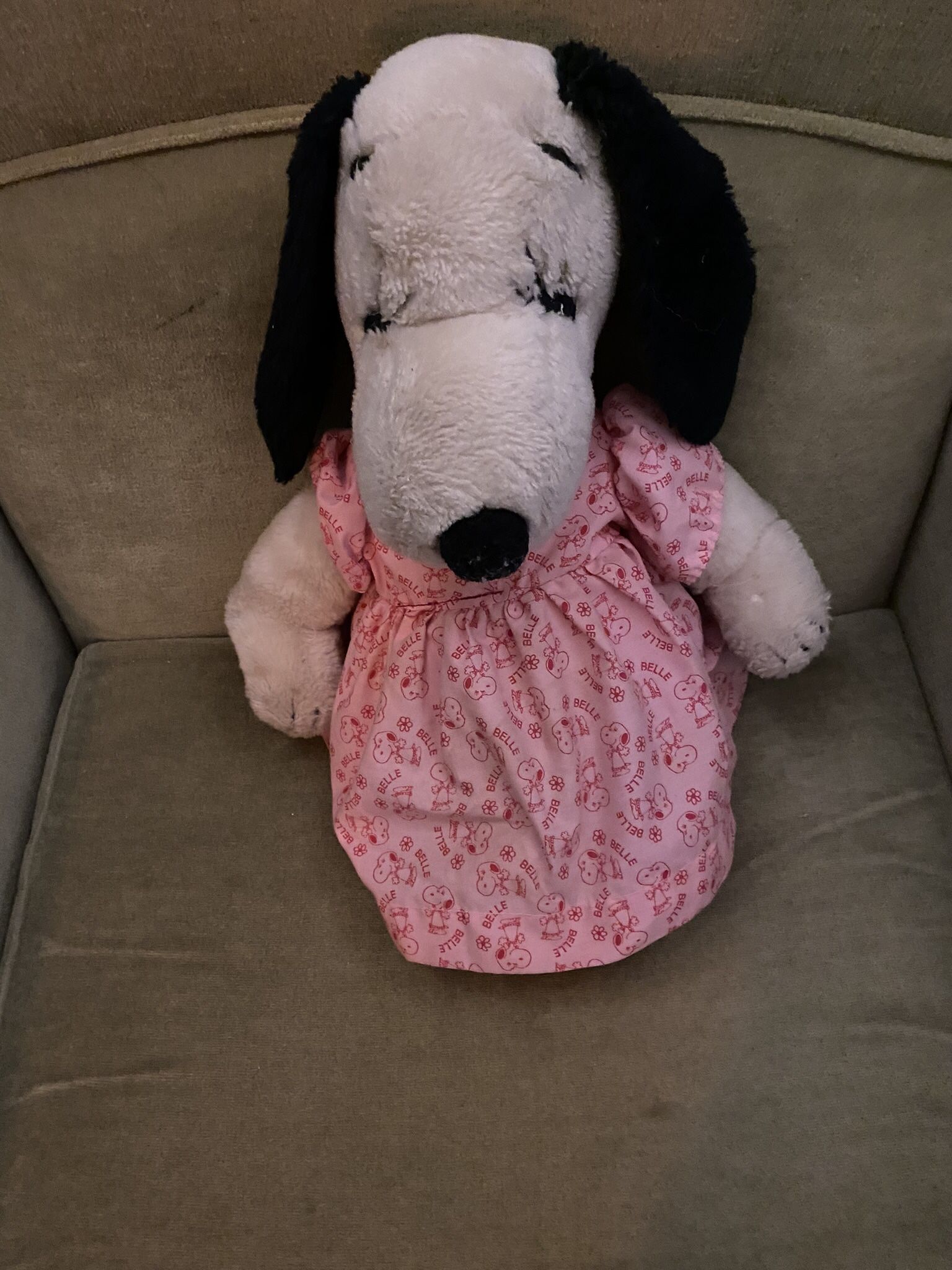 Vintage Peanuts Plush Snoopy Belle Toy Doll. Wearing Pink Dress