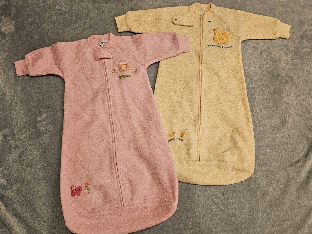 Lot of 2 Carter's Blanket Sleepers Pink Yellow 0-9 Months