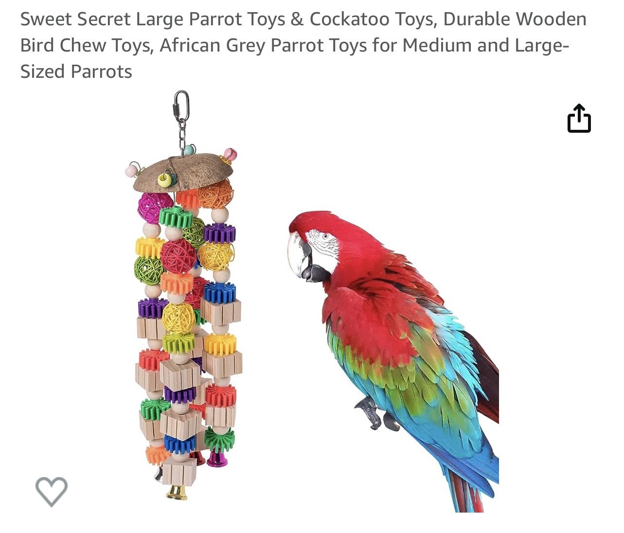 Sweet Secret Large Parrot Toys & Cockatoo Toys, Durable Wooden Bird Chew Toys, African Grey Parrot Toys for Medium and Large-Sized Parrots