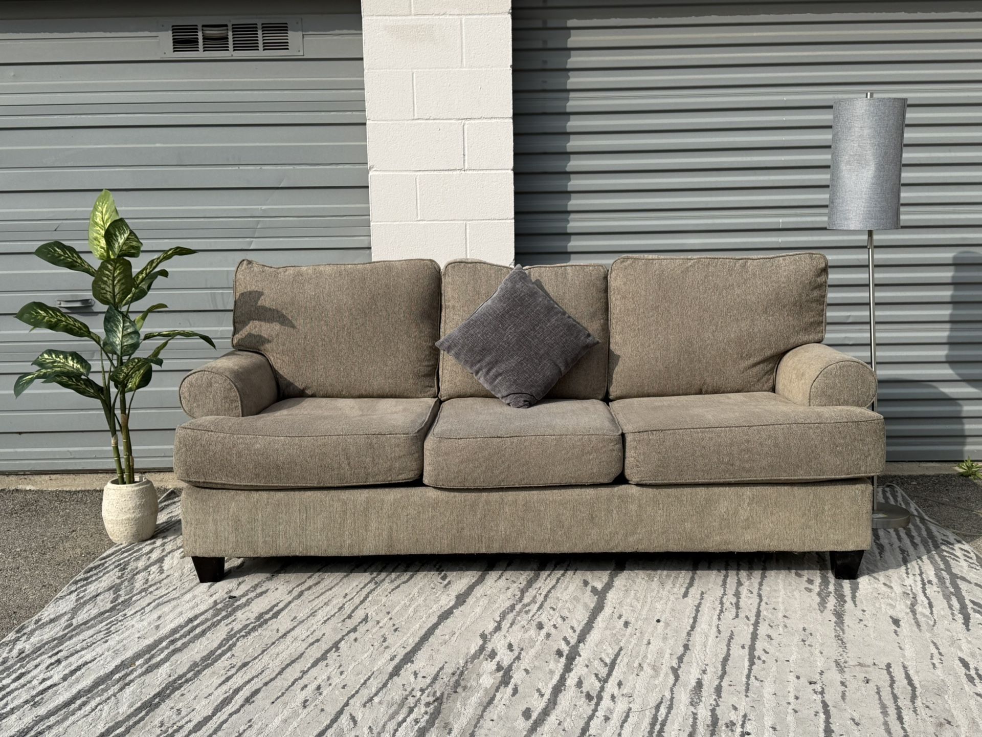 ✨ Price: $320 Beautiful 87” wide modern sofa in excellent condition! Professionally refurbished, deep cleaned, sanitized, and vacuumed. Ready for your living room today! ✅ Smoke-free & pet-free ✅ Sanitized & professionally cleaned ✅ Indoor kept (photos taken outside for better lighting) ✅ No deposits required ✅ Cash or Zelle (in person) ✅ FREE delivery ✅ Same-day delivery available 📏 Dimensions: • Width: 87” • Depth: 39” • Height: 32” This comfortable 3-seat couch is perfect for: Living room • Apartment • House • Office • Studio • Rental property • Airbnb Neutral color matches any decor – modern, contemporary, minimalist style. Very comfortable cushions with supportive seating. We are a serious local business with 2+ years of great reviews ⭐⭐⭐⭐⭐ We keep all couches indoors in a clean environment. 📩 Message us today to schedule delivery! —— Hablamos español 🇪🇸