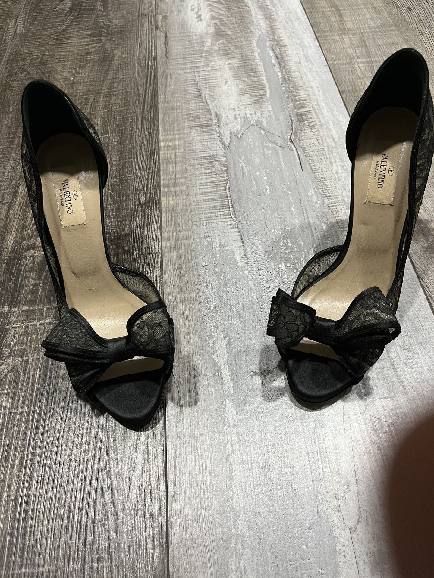 Satin Lace Couture Bow Peep Toe Pumps Size 39 (8.5) Some wear at sole ( shown in pic) Excellent used condition