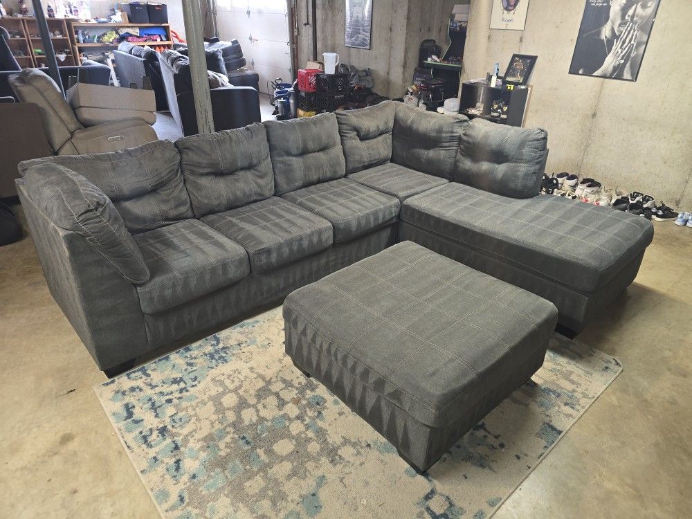 Ashley gray 2-piece sectional with matching ottoman