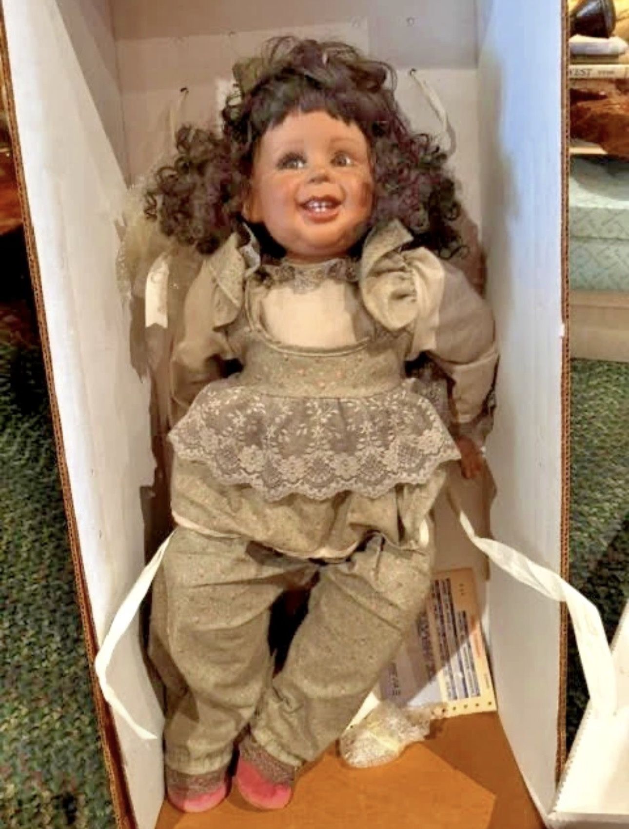 This is a FayZah Spanos Precious Heirloom vinyl doll named "Ann Marie-II." The doll is a limited edition, signed and numbered collectible by award-winning artist FayZah Spanos. It is a life-like sized doll, typically made with a vinyl head, arms, and feet, and often a weighted cloth body. Spanos founded Precious Heirloom Dolls in 1986 with her studio and manufacturing plant located in Tarpon Springs, Florida, The dolls are highly detailed and sought after by collectors. Certificate of Authenticity is in the box along with the Certificate of Registration and original sales receipt. Please evaluate pictures to determine condition of items. Contact seller for additional information or pictures. What you see in the picture is what you get. Pictures can look different on different monitors. Items are sold as is so make sure it's exactly what you want and ask all questions before making purchase all items stored in non-smoking environment. No returns Please leave favorable feedback and if you're not happy please contact me before putting unfavorable comment. Thanks for viewing my item and have a great day