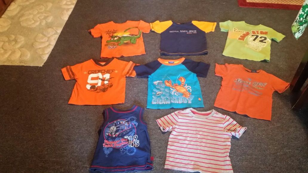 This is 7 short sleeve shirts, and one tank top they are all in good condition all size 3 toddler, $6 for all