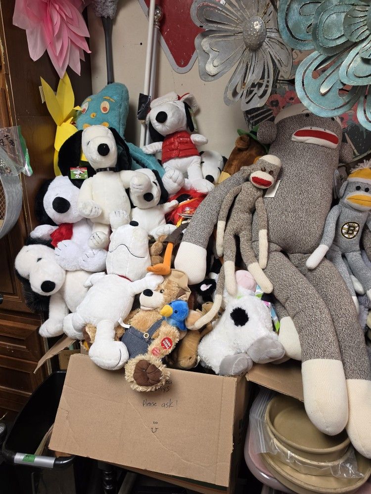 Retro vintage stuffed animals $5 - $30 ea Sylvester ET Snoopy Nesquick rabbit Pluto Cow Wolf Singing bear Yogi bear Sock monkey Pumba Oregon Duck Elephant Penguin Raggedy Ann And more