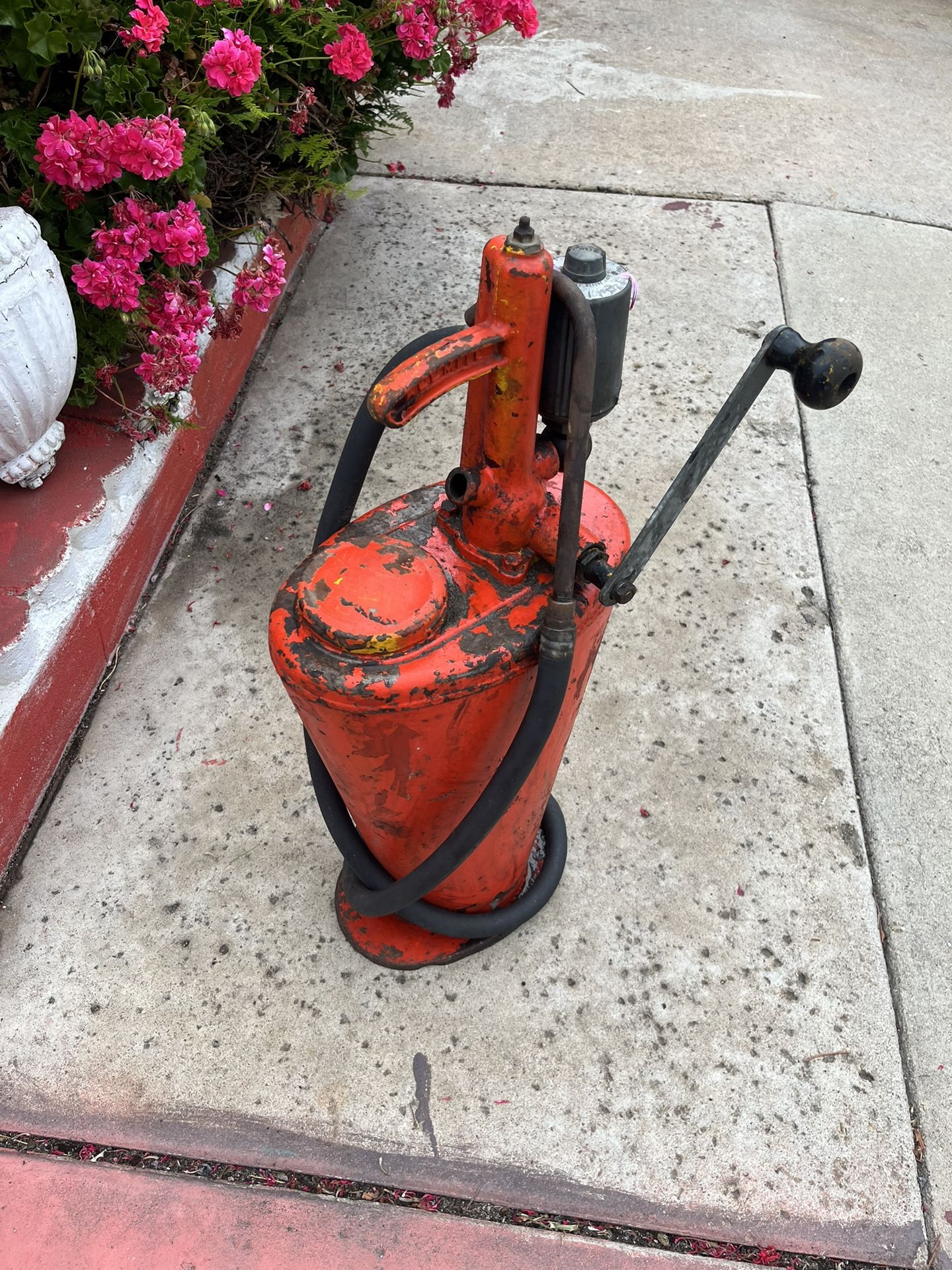 Old hand crank oil pump. Not sure if it works, but don’t need it anymore as we are clearing out the garage.