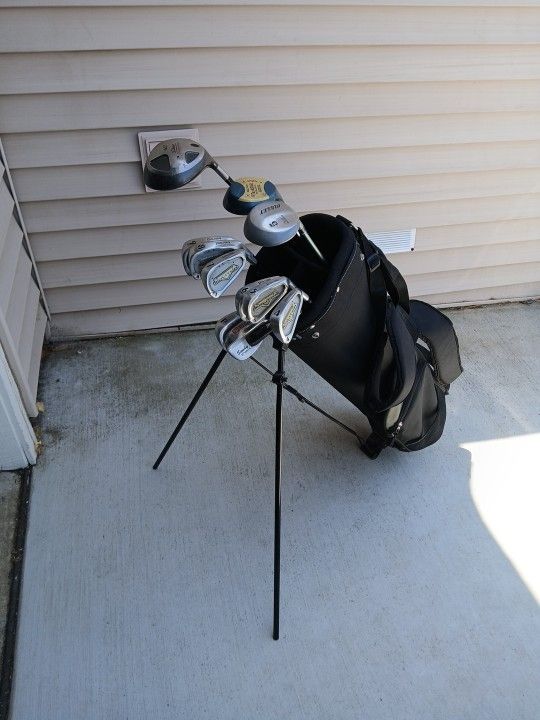 Whole Set Of Golf Club RH Titleist Driver 9.5° Ts2000. #3 Wood BULLET #5 Wood SPALDING IRON SET #4,55,6,7,8,9. SPALDING PW. WILSON SW. SPALDING PUTTER And TOUR Stand Golf Bag. Good Condition Good for the Starter