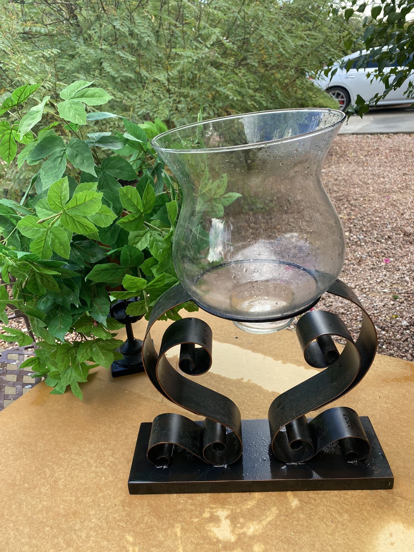 Big metal iron work and glass candle holder Or vase Z Gallerie