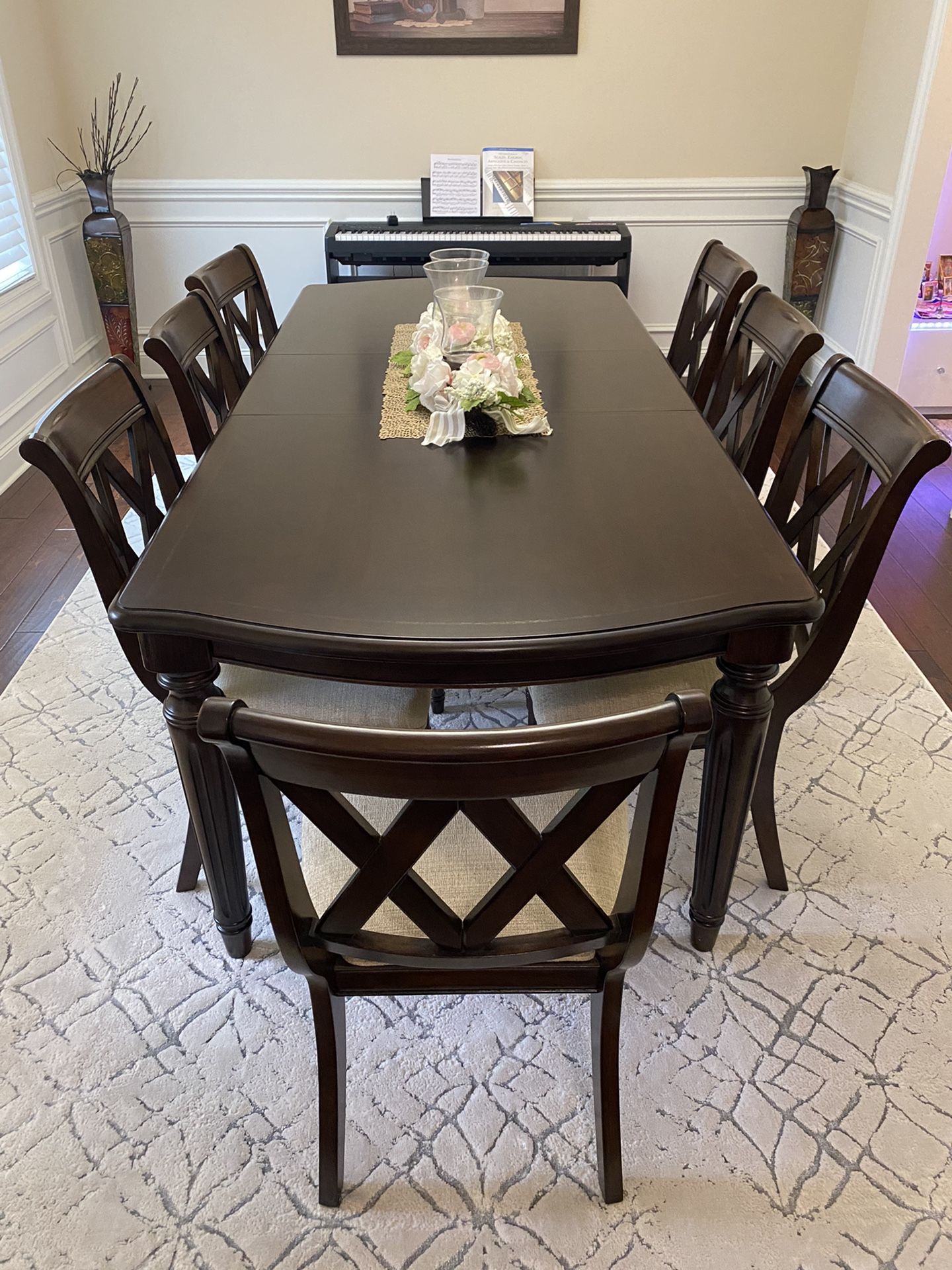 Dining Room Set - 1 Table, 8 Chairs Comes with extendable leaf Excellent condition like new