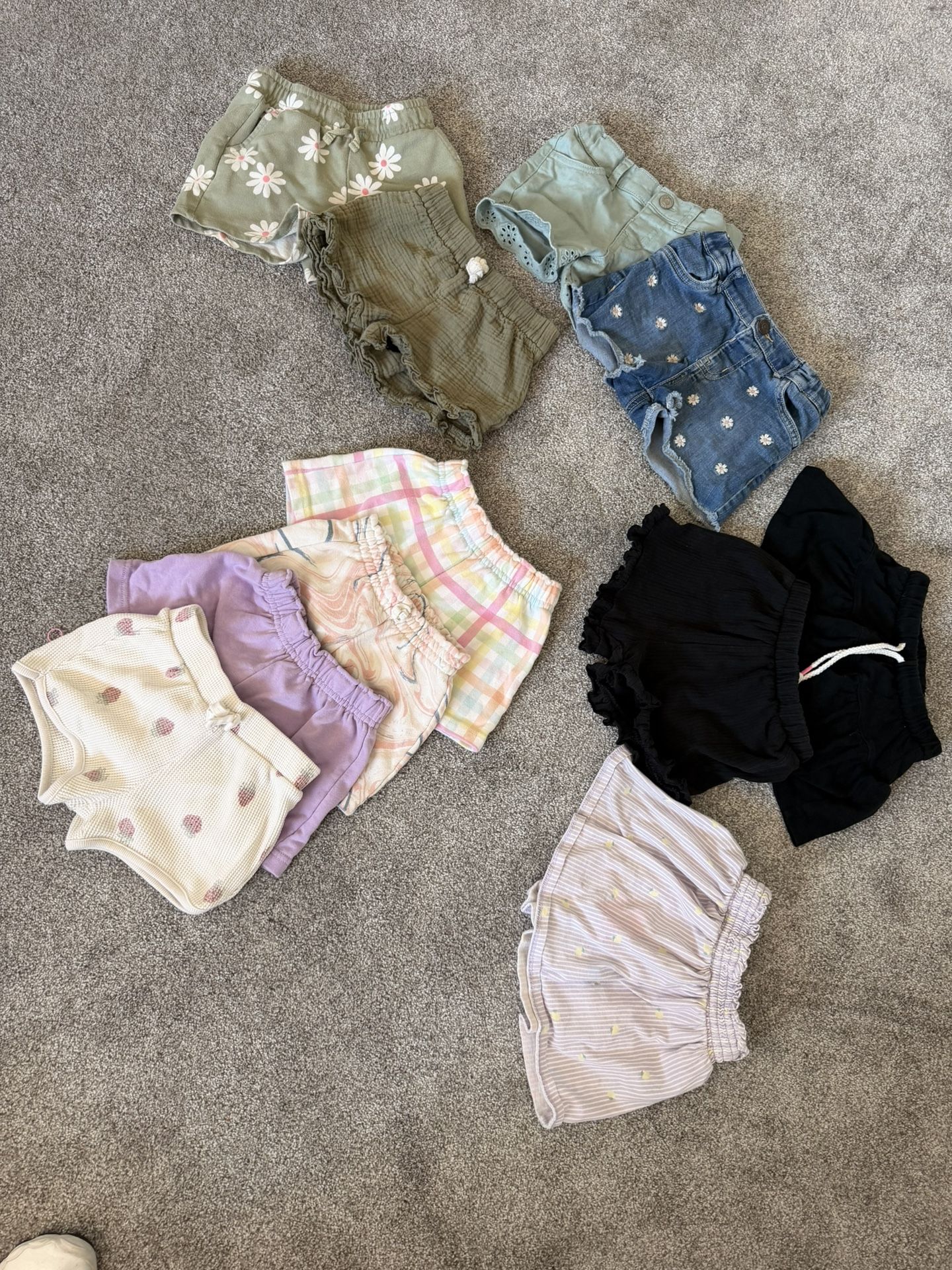 Great bundle deal – all 11 shorts and skorts for a very low price!” Lot of 11 girls’ toddler shorts and skorts, all in size 3T. Includes: • 2 pairs of denim shorts in excellent / like-new condition, barely worn • Black skort • Purple and white skort • Multicolored shorts • Additional everyday shorts in various styles and colors All items are in good to excellent used condition. Comfortable, cute, and perfect for summer, playtime, daycare, or casual outings. Clean, well cared for, and ready to wear. Can be sold as a lot or separately.