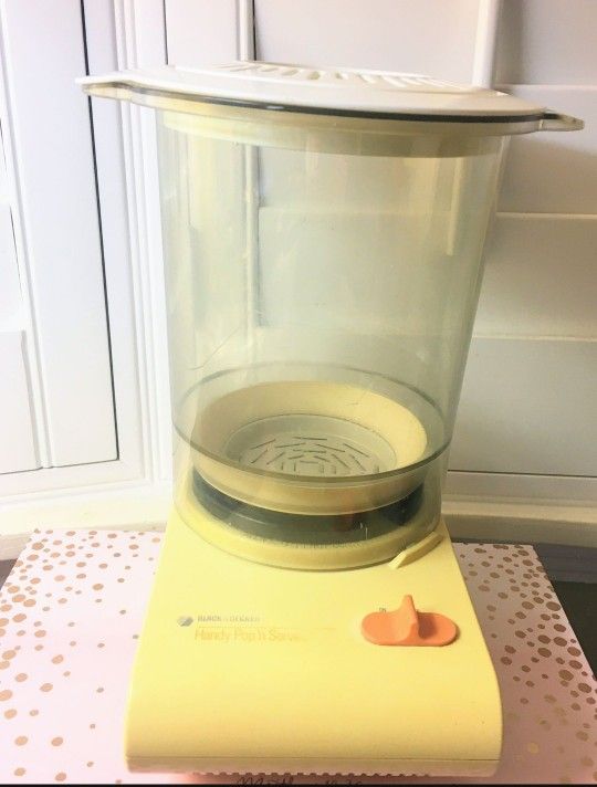 Black & Decker Handy pop n'serve popcorn popper. Hot air popping into it's own serving bowl. Has some scratches on the plastic but in good working condition.