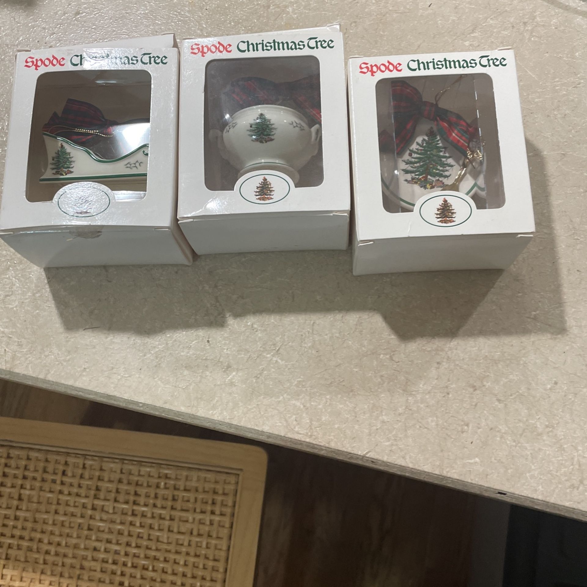 Christmas ornaments: 5.99 for Sleigh 5.99 for Cup 5.99 for Plate 14.99 for all