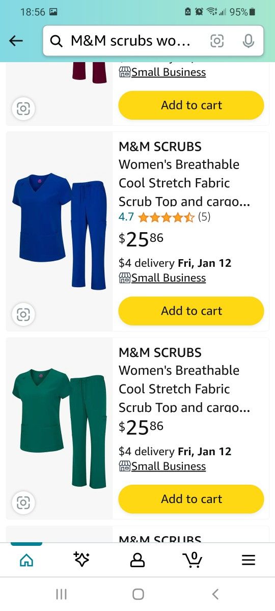 M&M SCRUBS Women's Breathable Cool Stretch Fabric Scrub Top and cargo Pant Set. I have it in green and blue.