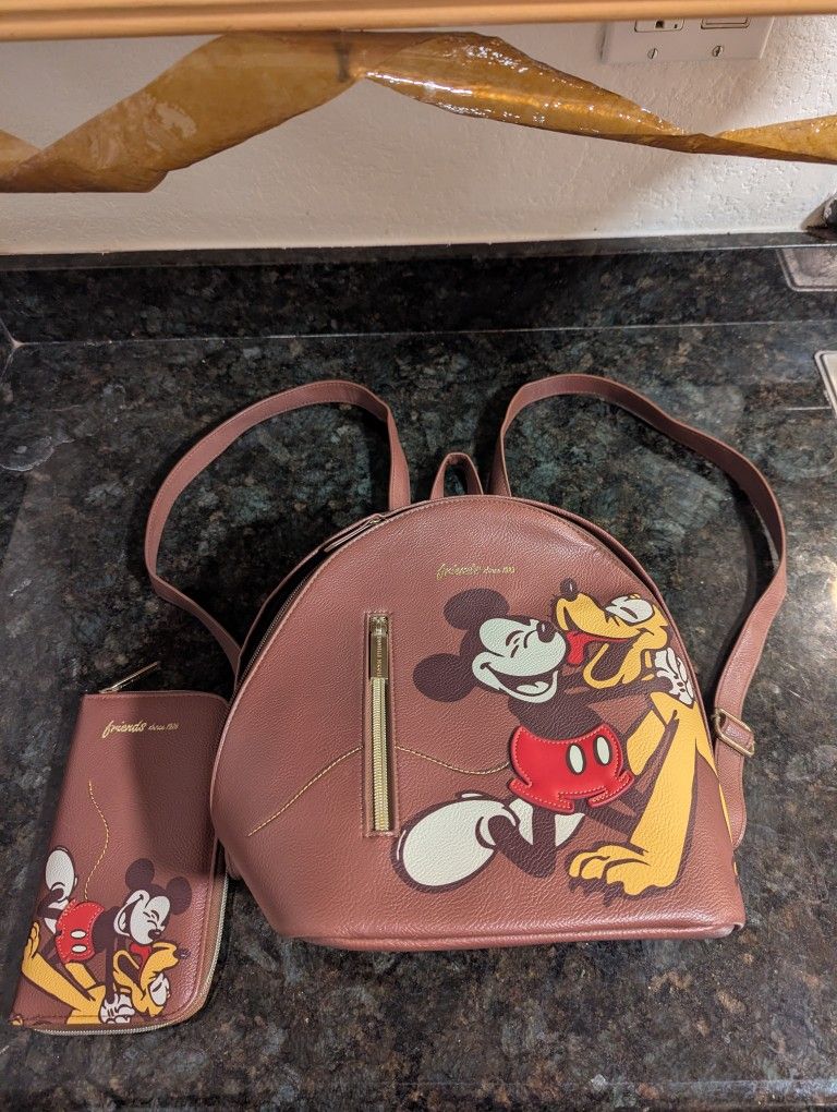 Practically brand new. Danielle Nicole Slim Loungefly backpack and wallet. Was in a storage tote but not used. Brown leather, officially licensed merchandise. $80 or best offer. If you see the ad, it's still available.