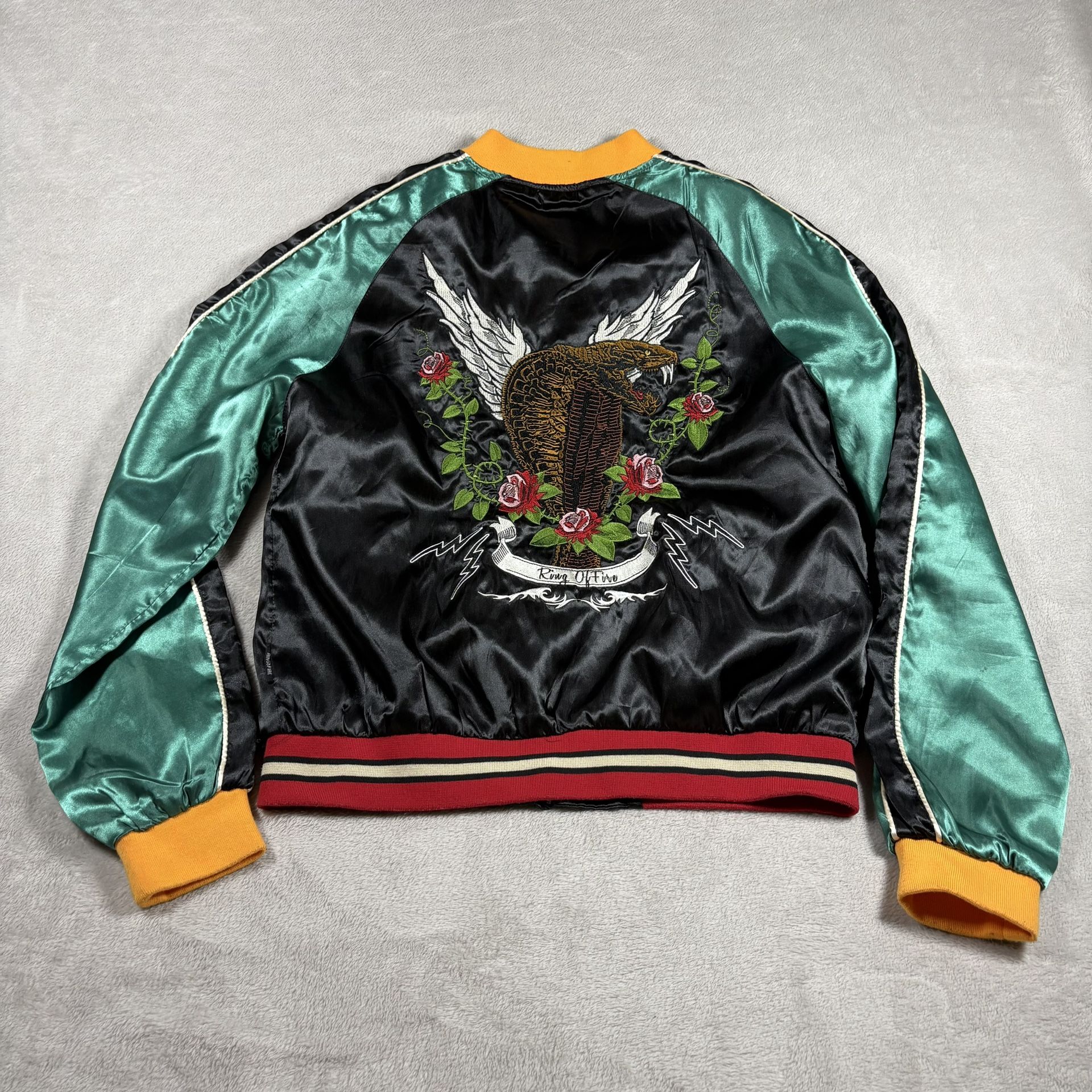 Ring Of Fire Mens M Black Green Long Sleeve Full-Zip Bomber Jacket Y2K #3170