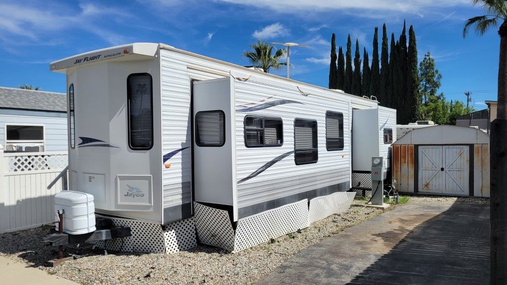 PLEASE; ... READ THE AD completely BEFORE call me --- seriously , read the ad please -- park model / need some tlc --- $9500 price as is --CALL Nine //five//one --544---5--I--64 MUST BE MOVED --- road ready........ the trailer WILL NOT be available until March 19 th, 2026 !!! Located in a trailer park in Lake Elsinore Ca 92530 Read This !!! -- The trailer has SOME soft spots in the living room by the dinette table area --- I have a quote of $2500 to install ALL NEW flooring at the same time -- basically all the flooring in the living room / kitchen and bathroom at the same time.( much more than is needed for the soft spot area ) All except the back bedroom would be new --- ( MORE than is needed the soft spot BUT why not update all the flooring was our thinking for the $2500 bid -- Up to you --- Or use it as it is THE ROOF HAS NEVER LEAKED -- Roof is perfect -- NO past or current leaks It is being used now as it is ,,, BUT this is why it is $9500 now as is 2011 Jayco bungalow park model destination trailer -- 2 large slide outs -- California title / current registration the trailer WILL NOT be available until March 19 th, 2026 !!! Located in a trailer park in Lake Elsinore Ca 92530 call ..... nine five one (contact info removed)