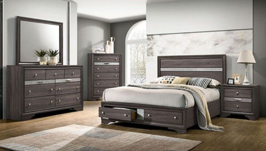 Brand New Grey 4pc Queen Bedroom Set (Available In Eastern King)