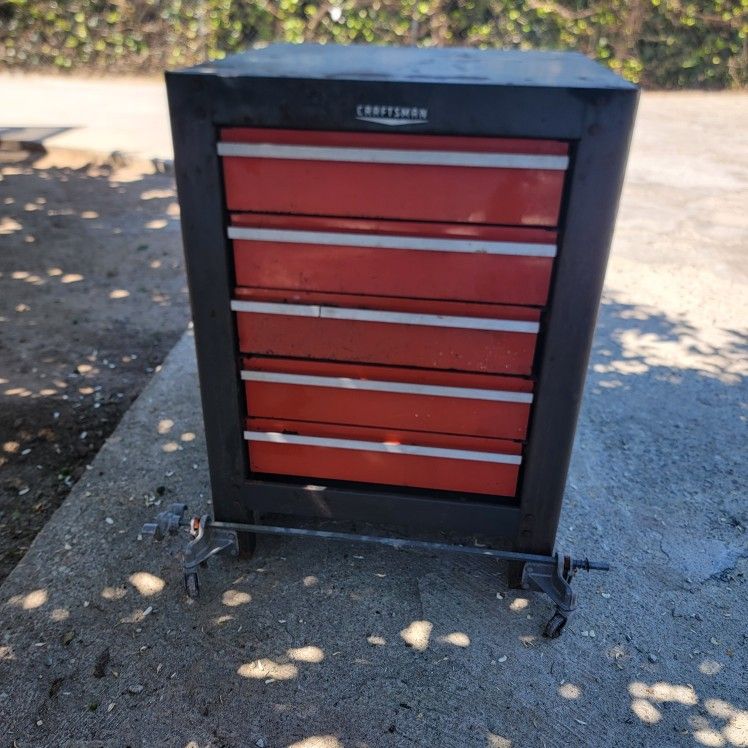 Good condition, Craftsman Metal 5 Drawer Tool Chest With Wheels,it was in our house when we moved in we dont need it,very solid and weight resistant, asking $200. Measurements 34 inches height 24.5 inches deep 24 inches wide