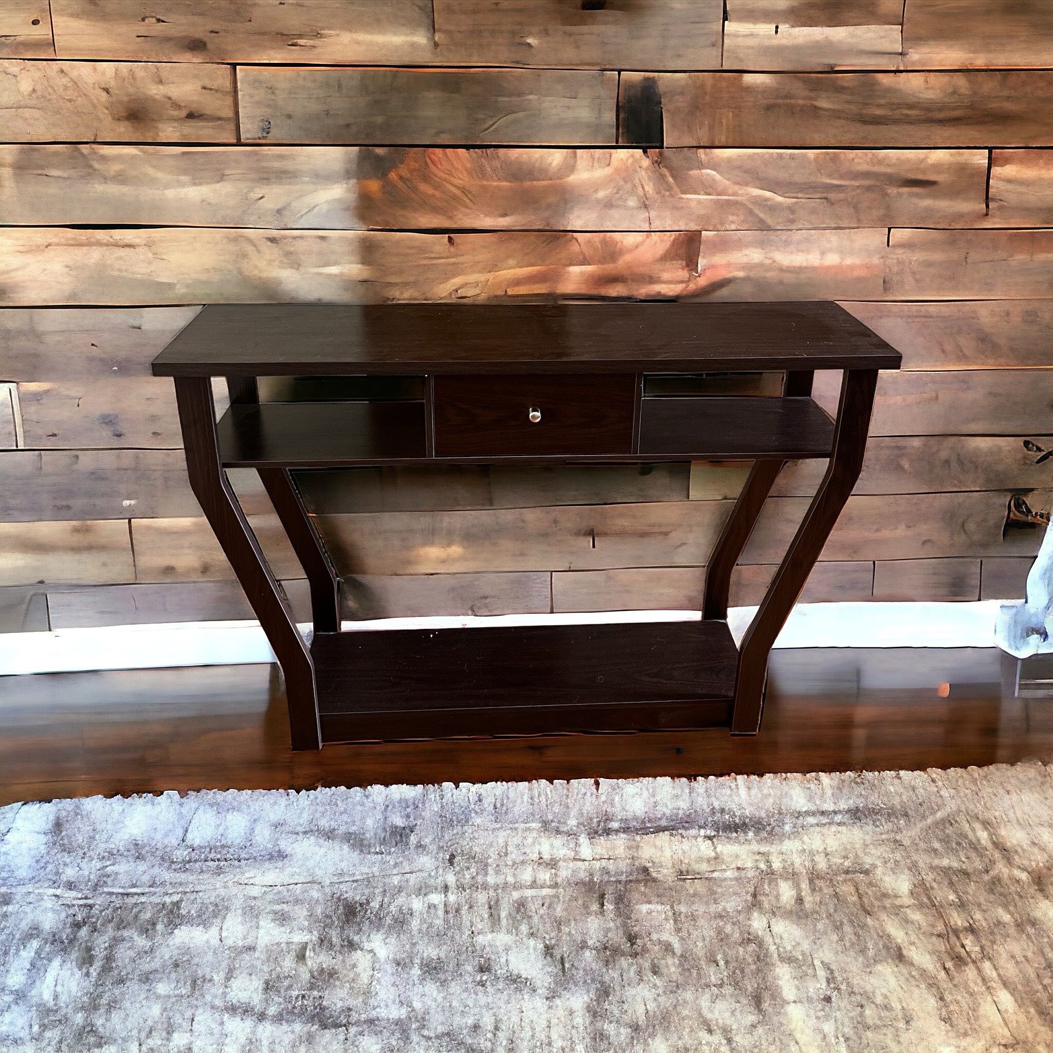 Size 47”x32”x12” Narrow Console Table, a sleek and stylish space-saving solution for any room in your home. With its compact design, this console table is perfect for tight spaces that require a little extra storage. The single drawer provides ample space to store keys, mail, or other small items you need to keep organized. Crafted with high-quality materials and finished in a beautiful neutral tone that complements any decor style. The Narrow Console Table is versatile enough to be used as an accent table or as a functional piece of furniture in your entryway or living room. This console table's narrow profile makes it an ideal choice for small apartments or homes where floor space is at a premium. Its sturdy construction ensures long-lasting durability and provides you with years of reliable use. In summary, the Narrow Console Table offers an elegant solution for those seeking additional storage without taking up too much floor space. Its compact design fits perfectly into any decor style while providing practical functionality with its handy drawer feature - it's the perfect addition to your home!