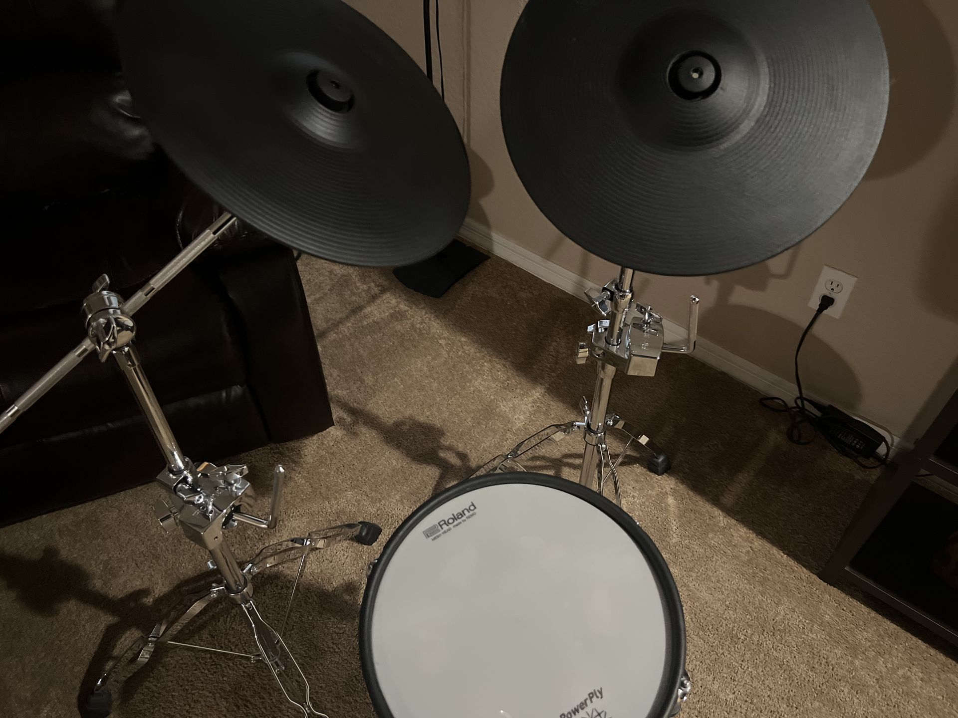 Roland V Drums snare and Cymbals with stands
