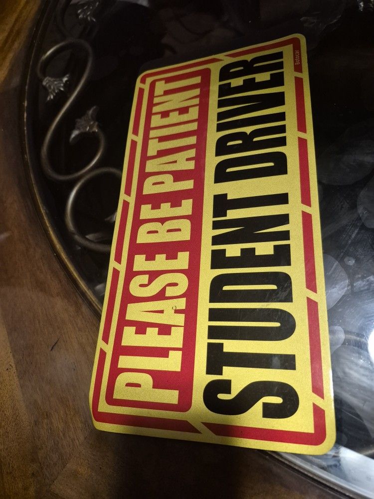 Student driver magnet for your car. Good condition. Measures about 12" x 4". Pick up in Compton close to Alondra and Wilmington zip code 90220. Iman de estudiante de manejo para pegar en tu carro. En buena condicion. Mide mas o menos 12" x 4". Puede recoger en Compton cerca de la Alondra y Wilmington codigo postal 90220.