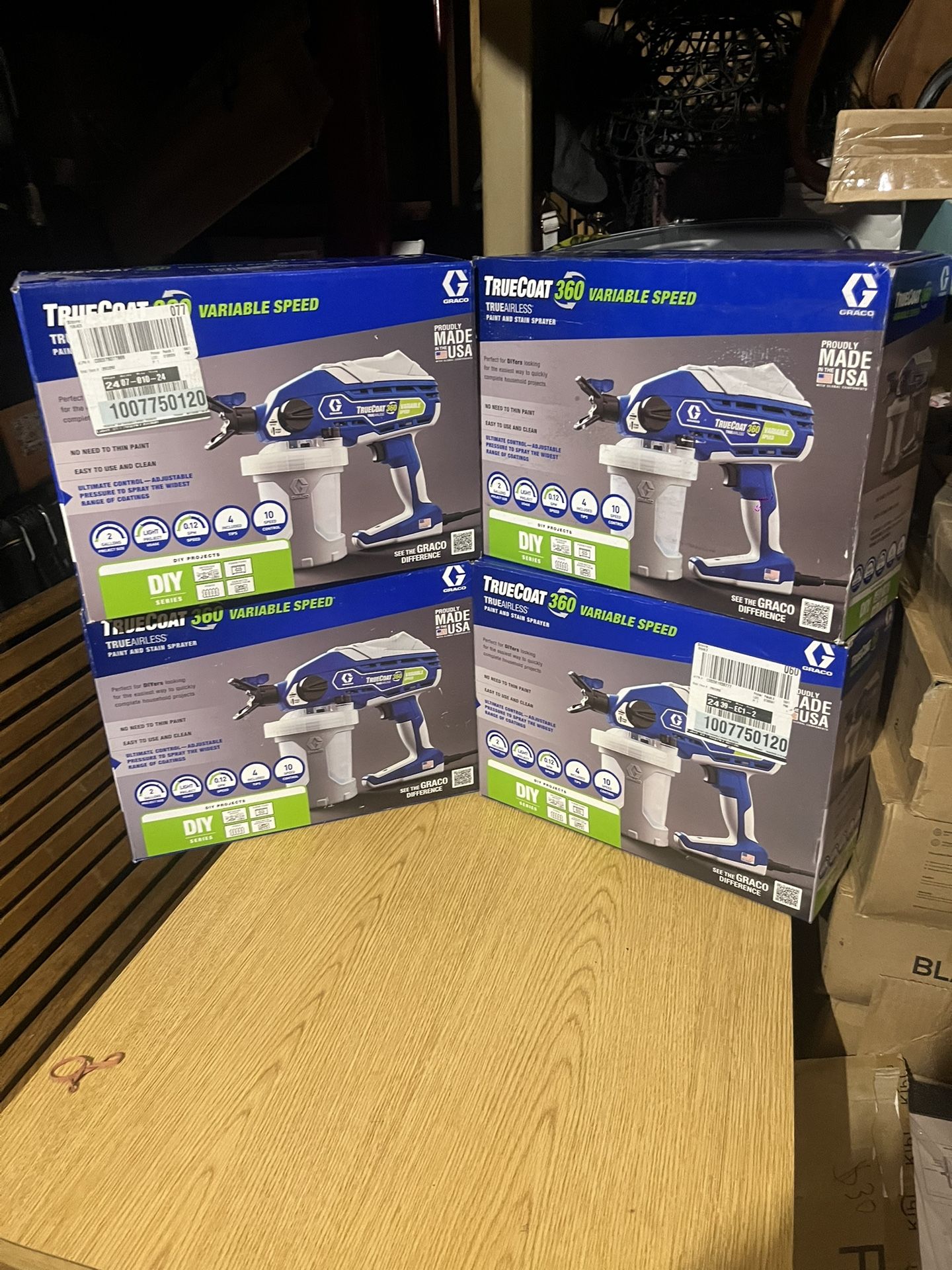 Greco airless paint sprayer great for DIY projects great for anything small I wouldn’t recommend it for a big jobs but paint the fans, bookshelf desk table. Anything like that this is a great item easy to clean easy to use and buy a top of the line paint company as you see I have a bunch of them. I usually retail them for around between 60 and 80% of what they cost at Home Depot.