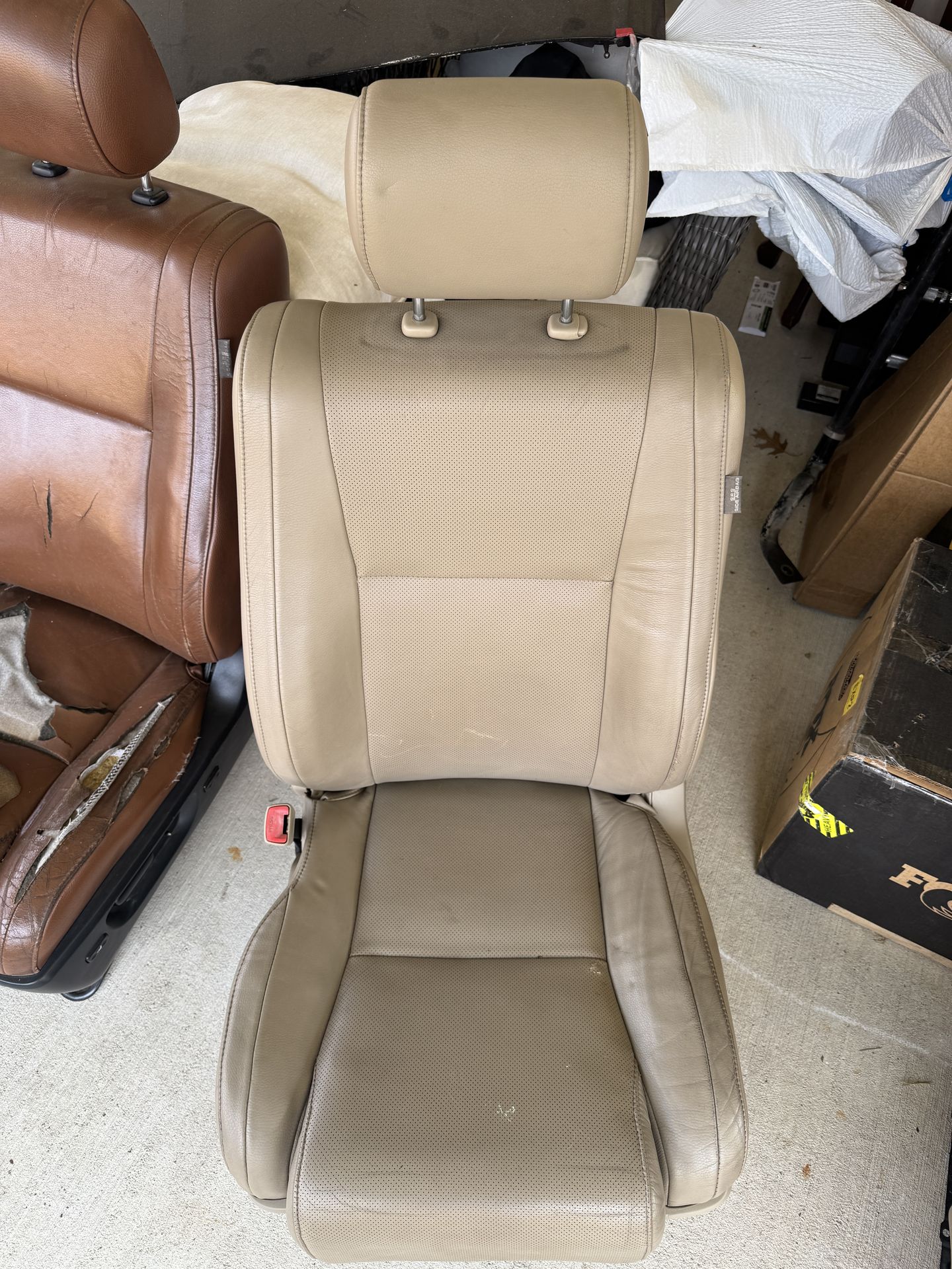 Los dos asientos del frente de 2010-2022 Sequoia o Tundra Platinum. Estos asientos son electricos y trayen aire condicionado y calor. Tienen memoria tambien. Tiene todos Los motores y conecciones. $600 por el par. Estan en buenas condiciones Front seats from a platinum sequoia. These are heated & ventilated seats. All motors/wire harness/connectors are all in tact. They are ready for install. $600 firm.