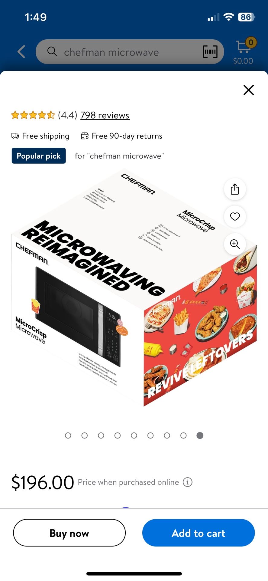 Brand new still in box with plastic wrap still in tact…. With the Chefman MicroCrisp Microwave, you can reheat leftovers like never before! The unique cook and crisp combination heats up food fast and finishes it off with a unique crispy crunch. The 6 precision presets and user-guided touch control simplifies programming for perfectly cooked foods. Ideal for small kitchens without sacrificing power and the mute alarm option allows for use while family or friends are still asleep. NO MORE SOGGY MICROWAVE FOOD: Reheat leftovers with a crispy crunch! Cook chicken with a crackly skin finish, get crispy instead of soggy fries, and reheat your pizza with a crunchy crust. STREAMLINED SETUP: The user-guided touch control panel on our MicroCrisp countertop microwave ovens help you choose the perfect cooking time and temperatures for the results you want without the guesswork. POWER COMBO COOKING: The unique cook and crisp function offer dual cooking options in one so you can get the same results from a typical oven or microwave in one appliance. It's like a microwave air fryer combo that heats and crisps all in one. GUESS FREE PRESETS: With 6 precision presets, you don't have to guess how long to cook your favorite foods. Simply choose your food, cook, defrost, pop, reheat, and your convection microwave will do the rest! KEEP IT QUIET: The alarm mute option silences all MicroCrisp microwave cooker alarms. Allow your baby to sleep soundly in the middle of the day, or for early risers or night owls, keep your noise to a minimum while the rest of the house sleeps. PERFECTLY SIZED: This 20.5 x 16 x 12 inch microwave with a 1.1 cubic ft capacity is perfectly sized to cook everything you need while still fitting in seamlessly with your other kitchen appliances. BIG POWER: The unique power cooking combo combines a 1000 Watt microwave with cooking levels 1-10, and 1800 Watt crisp at 400°F to achieve that perfect hot, crispy reheat so you can look forward to your leftovers. EASY CARE: The easy wipe-down interior and dishwasher-safe glass cooking plate allow spills and crumbs to get easily wiped up so you can keep your microwave countertop oven looking like new. RESOURCES: UL approved with advanced safety technology for long-lasting durability and a 1-year assurance provided by Chefman. 1800W/120V-RJ55-MF NEW