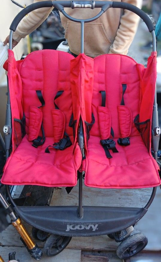 Still in perfect condition, gently used. Non smoking & no pets home. Lightweight side-by-side double stroller is narrow enough to fit through standard doorways! Features independently reclining adjustable side-by-side seats, a one-handed flat fold, parent organizers with 2 zippered pockets and 2 beverage holders, and a humongous storage basket .