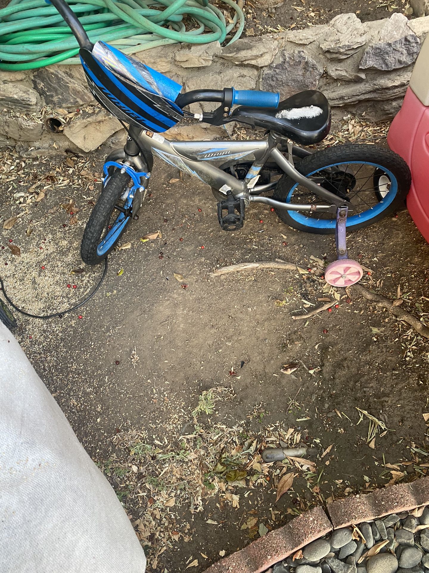 Kids bike pink $15 Blue bike $20 Cars $10 each 12”