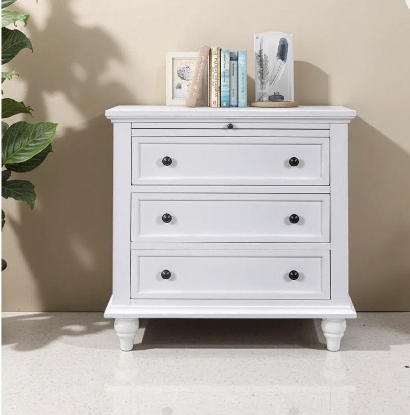 28” white 3 drawer with pull out tray nightstand New in box $280each 2 available If it’s listed it’s available