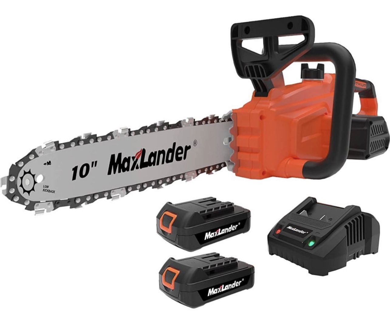 MAXLANDER 10-Inch Battery Operated Chainsaw, 20V Cordless Chainsaw, 2 Pcs 2.0Ah Batteries with Charger, Auto-Tension, Auto-Lubrication, Lightweight