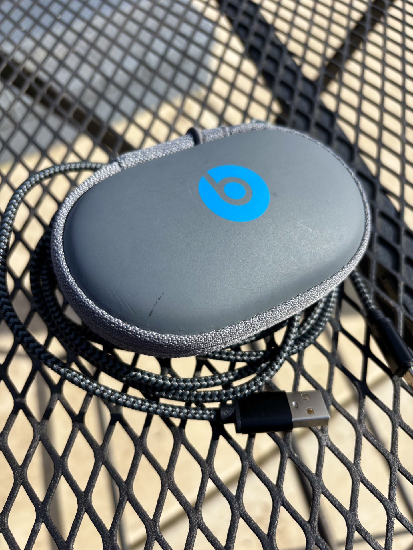 PowerBeats3 wireless Bluetooth neckband earphones They are sweat & water-resistant Secure fit ear hooks Clear sound- both sides work Built in mic Long battery life Comes with Grey carrying case and USB Charger.