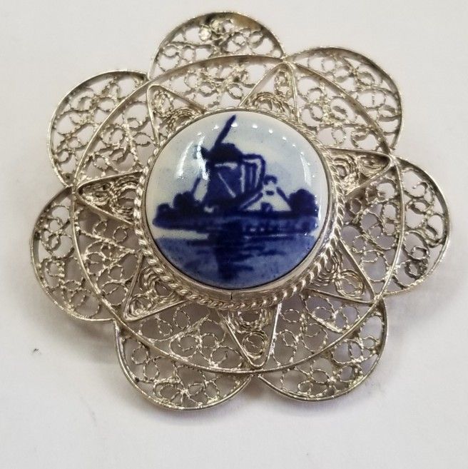 Sterling silver, With porcelain center