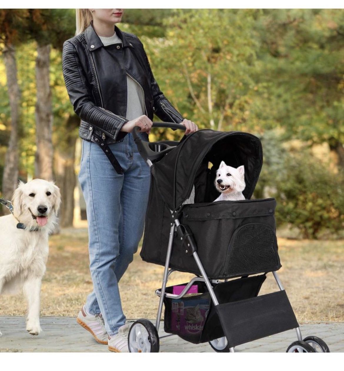 Foldable Dog Stroller Pet Travel Carriage Detachable Carrier Cart - Black
