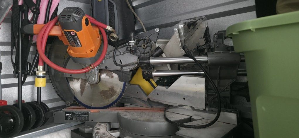 Estoy vendiendo mi shop saw Ridgid 12" dual bevel con luz de guía. La use como 6 meses y lleva mas de un año en storage fuera de los elementos. Pido $300 o mejor oferta. Selling my Ridgid 12" dual bevel with light cut line. Used it for around 6 months then it was placed in storage for more than a year away from the elements. Selling for $300 or best offer.