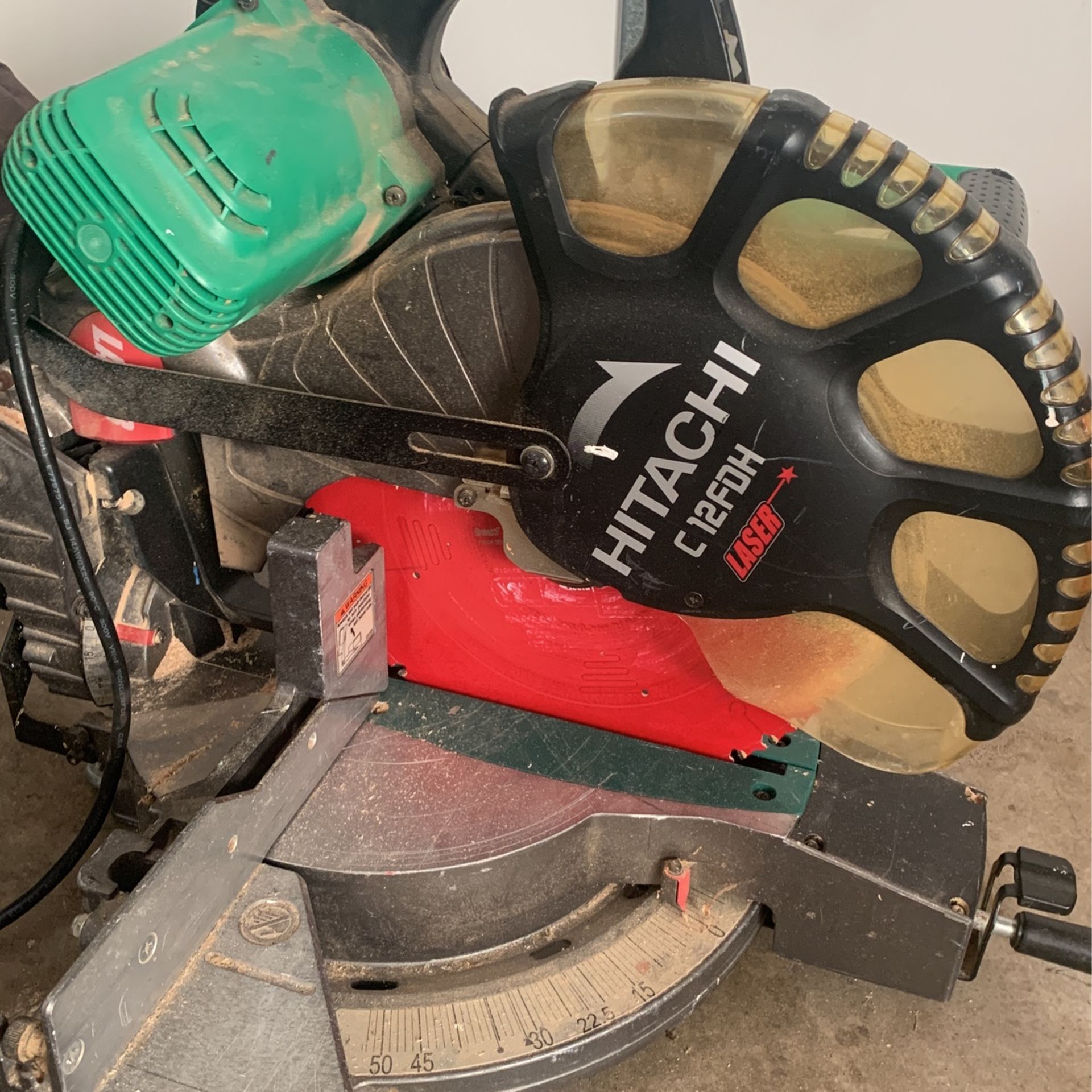 Hitachi dual bevel chop saw works perfect . Used 6 times . Paid $429 for it . $100