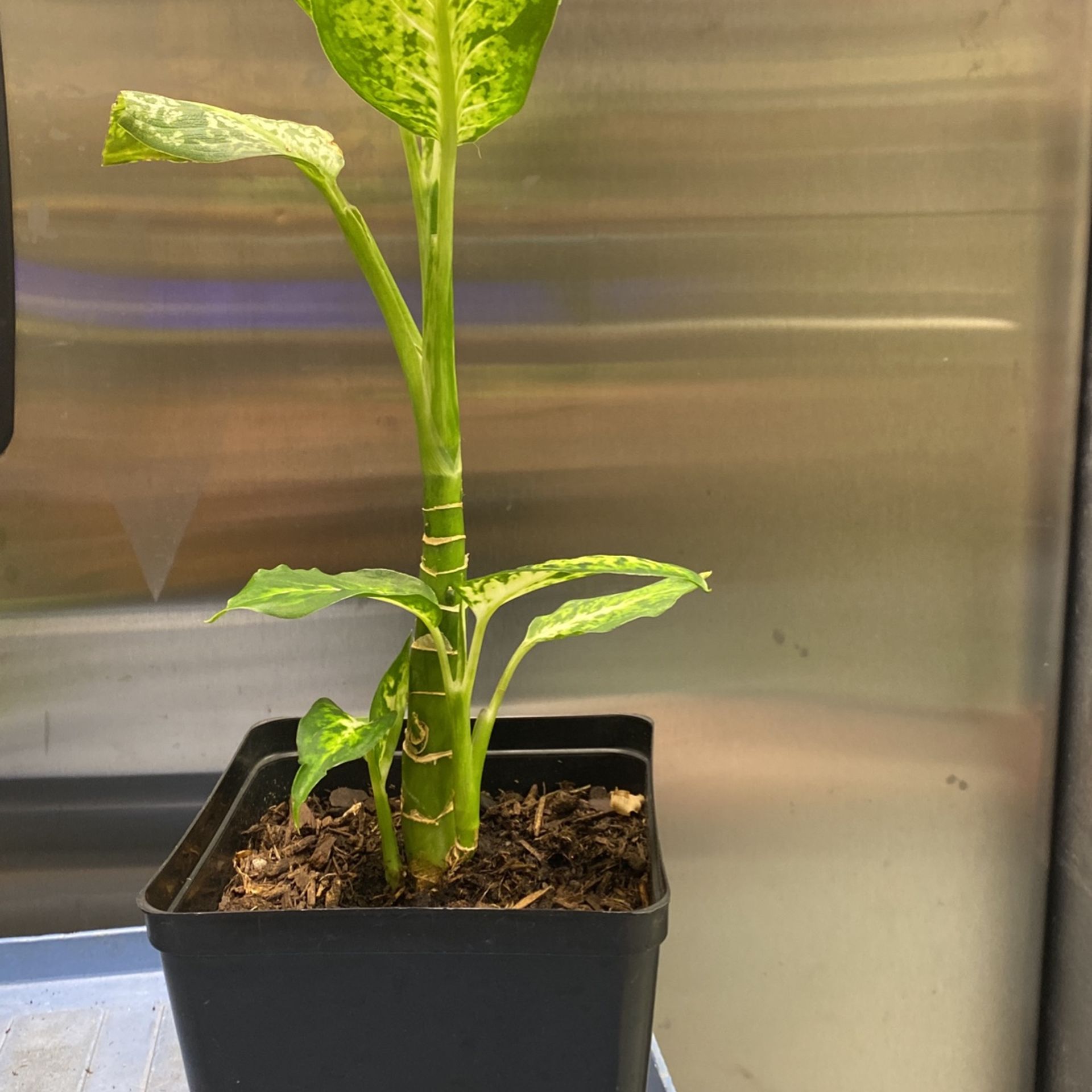 Diffenbachia “Amy” or leopard lily. 1 foot tall with 2 shoots 2 inches tall.