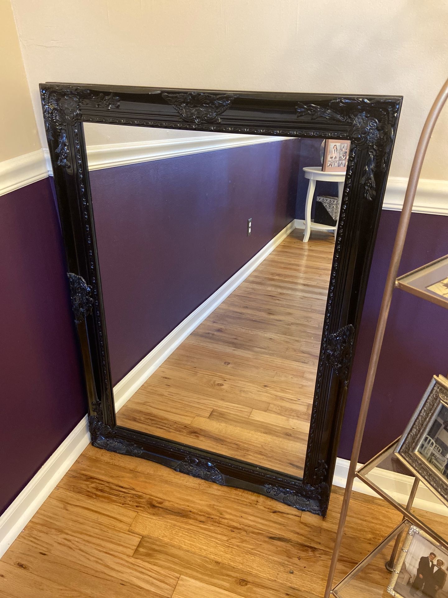 Large black mirror 29.5” wide 41.5” tall. Mirror and frame are great quality and great condition.