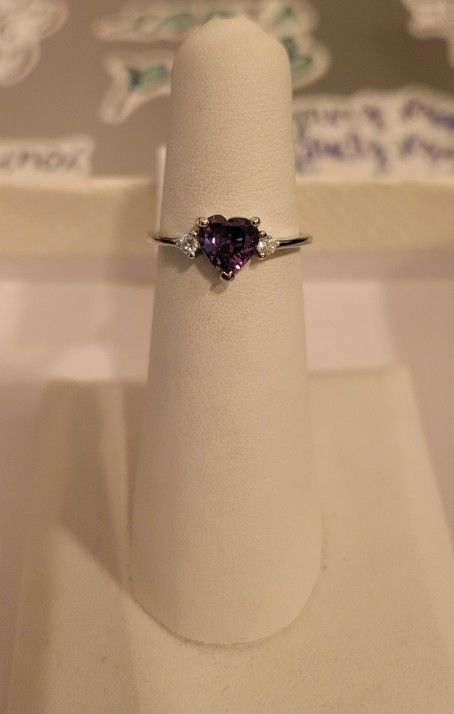 925 sterling silver decorated with amethyst heart and cubic zirconias