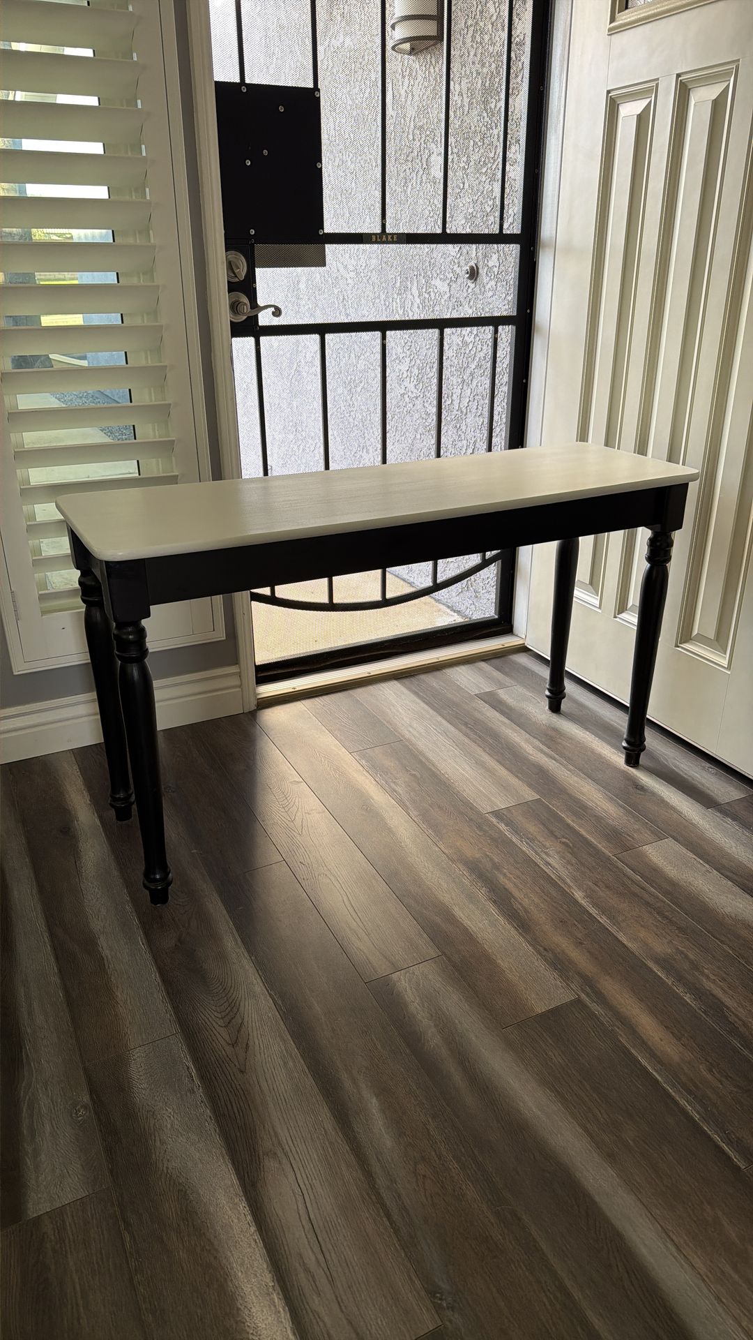 Small table Painted white top with black legs Good condition $20 48”L 16”W 27”H Pick up Will deliver to the city of Moreno Valley only