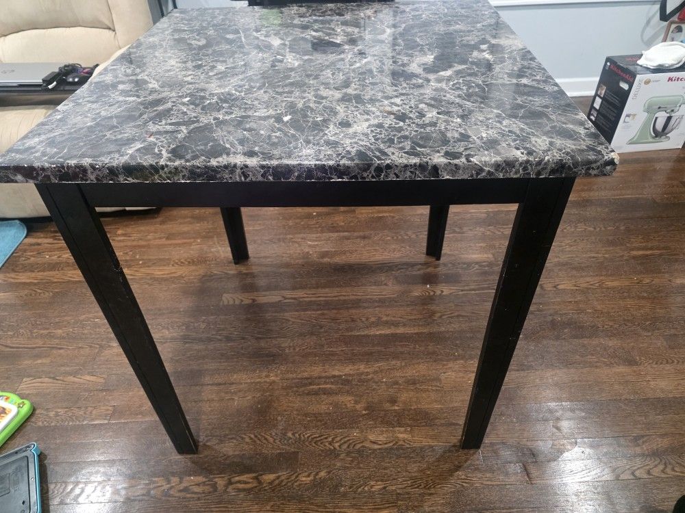 FREE Marble Look Dining Table – Pickup Only Free table in good condition. Marble-look top with black legs. Some cosmetic scuffs on the legs from normal use (see photos), but sturdy and fully functional. I can disassemble for easier transport if needed. Pickup only. First come, first served. No holds.