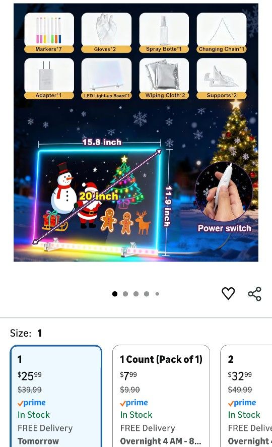 LED Drawing Board for Kids - 20 Inch Erasable Acrylic Electronic White Boards, with 7 Fluorescent Markers,Stand, 7 RGB Colors & 4 Modes - Creative Fun.