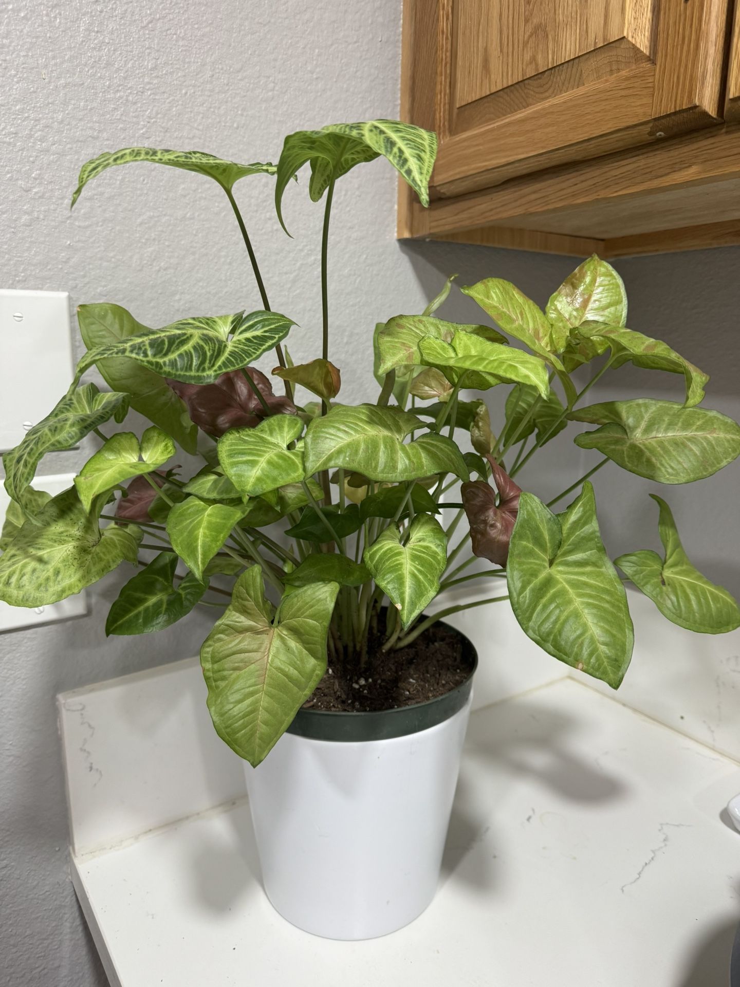 Beautiful, full Syngonium (Arrowhead Plant) with mixed varieties in one pot. Features green, patterned, and bronze-toned leaves. Very lush and well established. Easy-care houseplant—great for beginners or collectors. • One pot with multiple Syngonium varieties • Healthy roots and active new growth • Bright indirect light preferred • Water when top inch of soil is dry • Pot included (as shown) Perfect for home, office, or plant lovers looking for a fuller plant instead of small starters. Price: $45 Pickup: Local pickup only Payment: Zelle preferred