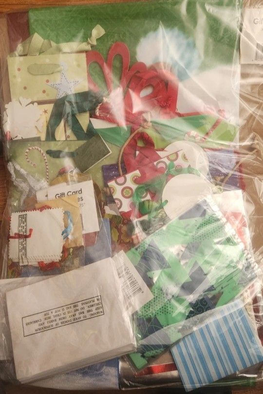 New Holiday Christmas 218 Piece Gift Bags, Boxes, Wrap Paper, Ribbons, Types, Lots of Stuff All $25