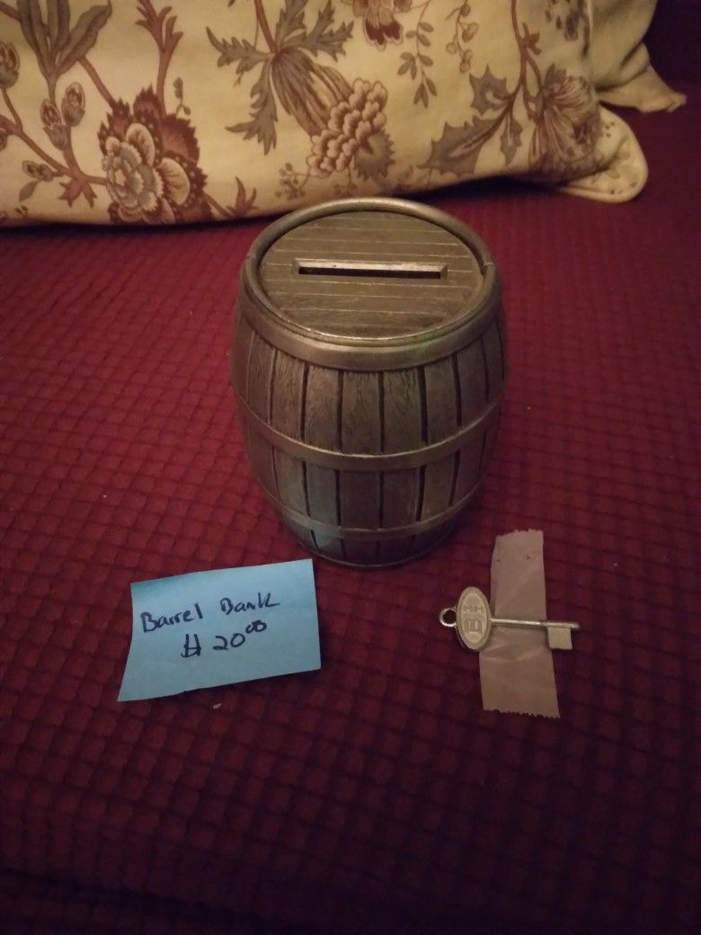 Pewter Locking Barrel Bank With Key